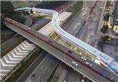 天桥全长235. 56米,包括主桥和南北两段梯道。主桥为索辅梁桥,全长180. 8米,共5跨,最大单跨为53米,主桥平面线型为反“S”型。