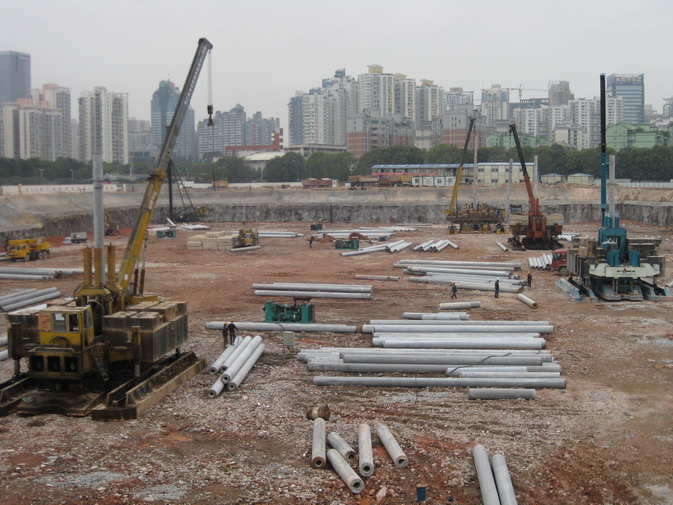 深圳市软件产业基地桩基工程2标工程造价4500万元,主要采用静压法施工,边桩采用锤击法施工。