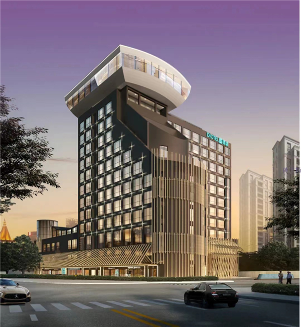 DIOTEL潮酒店(汕头店)装修装饰工程包括外酒店外立面、室内公共空间、客房等。